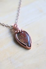 This is a fully handmade and hand wrapped copper wire pendant, made with a multi-colored bloodstone crystal, as its reds, yellows, and greens reminded me of the changing fall leaves in Colorado! The design here incorporates copper beads for a “fun” decorative style, with various degrees of swirls going each way. Just a special note that this is probably one of my favorite pendants I’ve ever made— something about that crystal is so special!