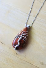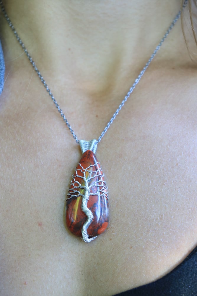 This is a red Jasper crystal cabachon, with a sterling silver tree of life design wrapped upon it! I made this pendant while I was in Rocky Mountain national park, inspired by the changing leaves during the fall time β€οΈπβοΈ